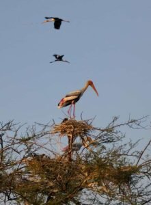 राजपुरा तालाब में तो पेंटेड स्टार्क की कॉलोनी बस चुकी है। तालाब के बीच बबूल के पेड पर पेंटेउ स्टार्क के घोसले बने हुए हैं। इस तालाब में उसके लिए पर्याप्त भोजन के तौर पर मछलियां और अन्य कीडे मकोडे भी हैं। इनके अलावा भी कई अन्य प्रजाती के पक्षी यहां डेरा डाले हुए हैं।